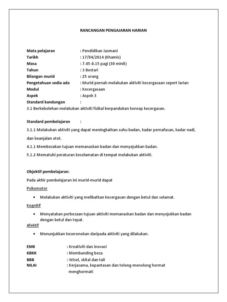 Koleksi rph rancangan pengajaran harian pendidikan jasmani tahun 1 untuk kegunaan guru dalam menyiapkan rekod pengajaran harian. 1.1.1 melakukan pergerakan yang melibatkan kesedaran tubuh dari. Rancangan pengajaran harian pendidikan jasmani kesihatan tahun 1 matapelajaran :