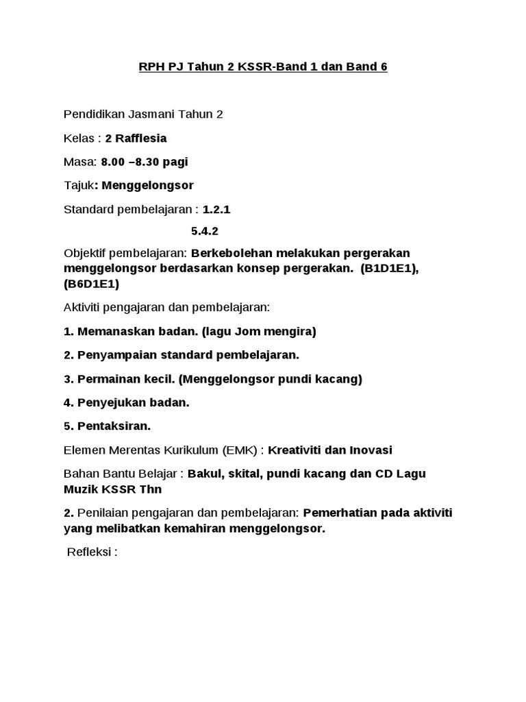 Alhamdulillah, perkongsian kali ini berkaitan . Koleksi rph rancangan pengajaran harian pendidikan jasmani tahun 1 untuk kegunaan guru dalam menyiapkan rekod pengajaran harian. Boleh share rpt/rph bm tahun 2 & tahun 3 dan pj & pk tahun 1.